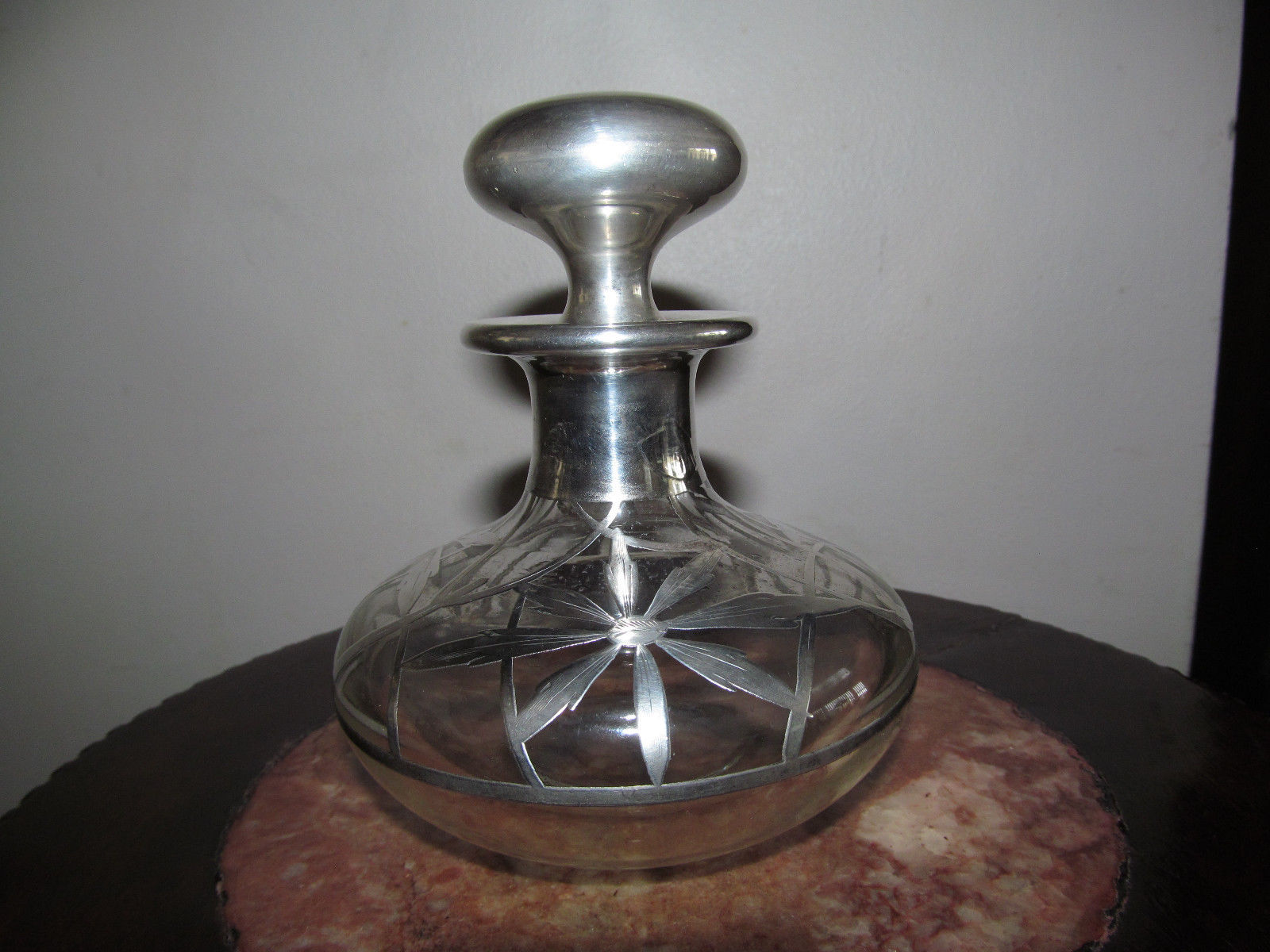 ART NOUVEAU PERFUME BOTTLE WITH SILVER OVERLAY 1900''s TO 1930''s