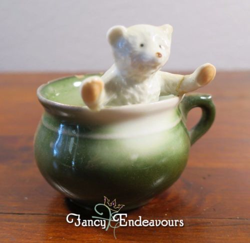Antique Germany Fairing Teddy Bear in Chamber Pot Potty Bowl