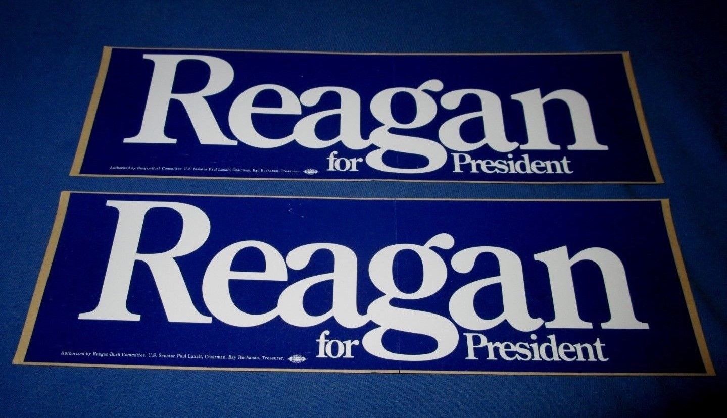 Title (ebay affiliate link): REAGAN FOR PRESIDENT-SET OF ORIGINAL 1980 UNUSED BUMPER STICKERS