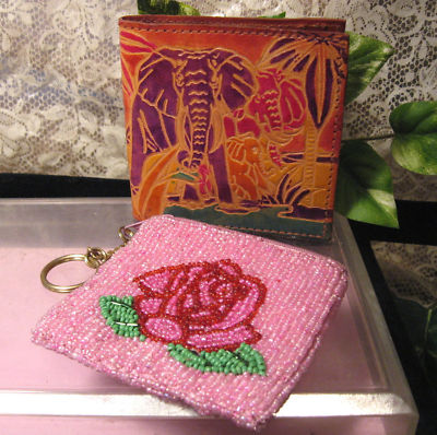 Title (ebay affiliate link): Vintage Beaded Key Chain Coin Purse & Leather Wallet