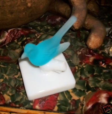 Westmoreland Blue Satin Bird On Milk Glass Branch Base
