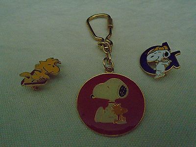 Vintage Snoopy & Woodstock Key Chain & Pins