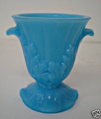 VOGUE MERCANTILE CO. NYC BLUE MILK GLASS URN VASE USA