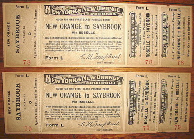 Title (ebay affiliate link): New York & New Orange Railroad Tickets Un-used -1890's