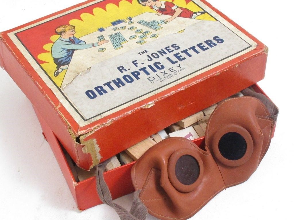 Title (ebay affiliate link): RARE VINTAGE R.F JONES ORTHOPTIC LETTERS DIXEY EYE TEST GAME WITH GOGGLES