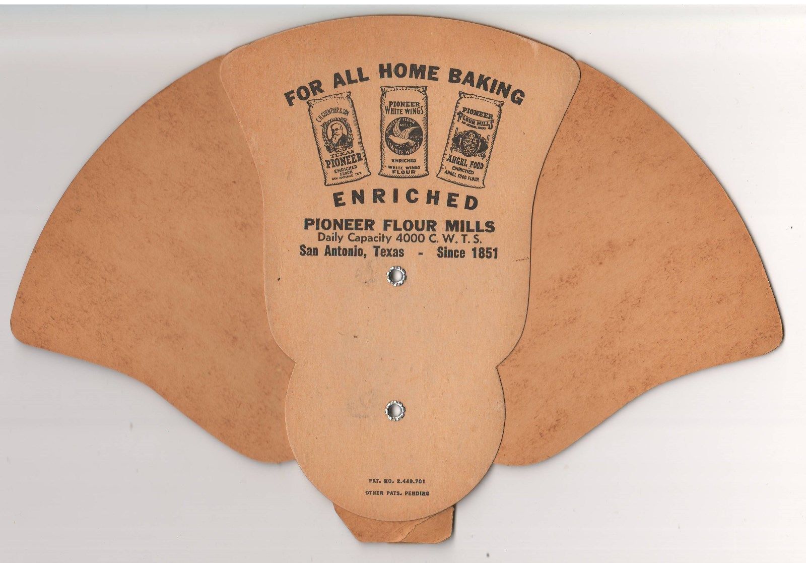 Title (ebay affiliate link): Original Vintage San Antonio, Texas Pioneer Flour Mills Advertising Paper Fan