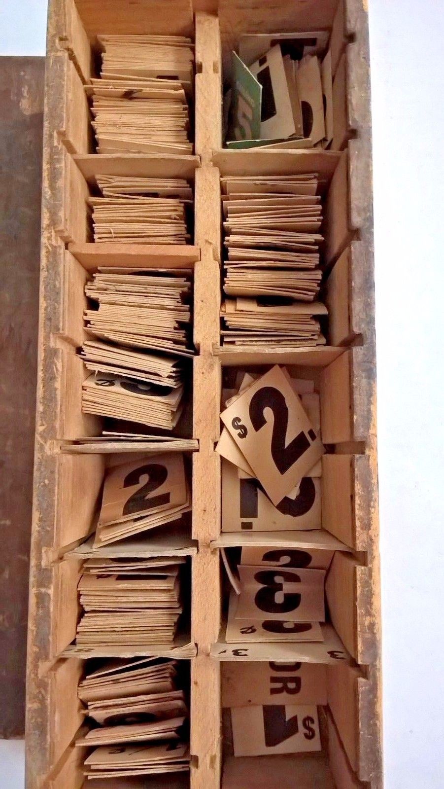 Vintage Lot Market Price Number Paper Tags Grocery Wooden Box Copyright 1920