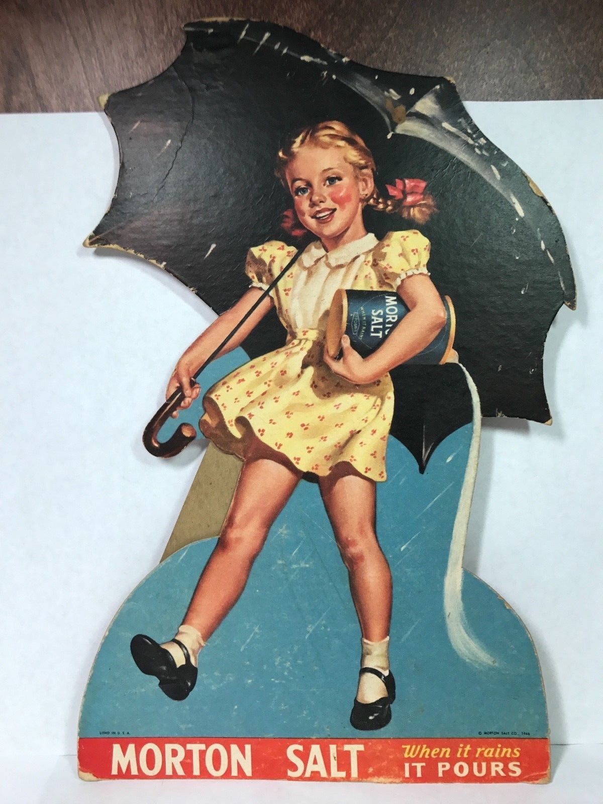 Title (ebay affiliate link): Rare Vintage Morton Salt Cardboard Store Advertisement 1946