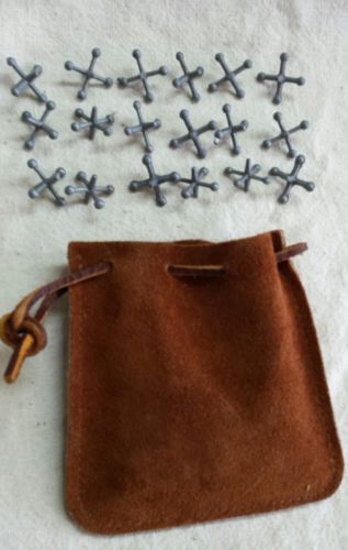 Title (ebay affiliate link): Lot of 18 Vintage Antique Metal Toy Jacks with Leather Drawstring Pouch