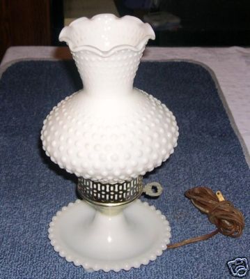 VINTAGE MILK GLASS HOBNAIL BEDSIDE TABLE LAMP LIGHT NR!