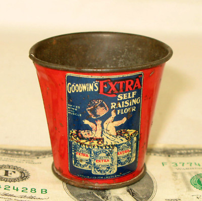 GOODWIN'S flour tin pail measure c1920 baby in crib