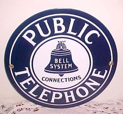 BELL SYSTEM PUBLIC TELEPHONE PORCELAIN SIGN