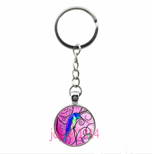 Vintage hummingbird Cabochon Tibetan silver Glass Chain Pendant Key Ring #YN-8