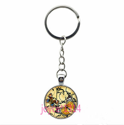 Vintage Butterfly Cabochon Tibetan silver Glass Chain Pendant Key Ring #YHD-28