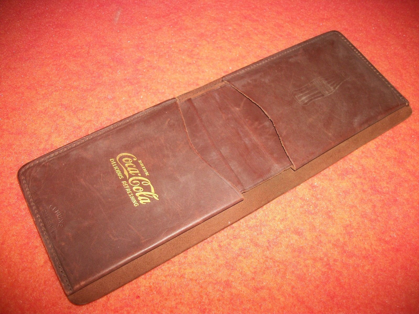 Original Antique 1920''s Calf Skin Leather Coca-Cola COKE Bi-fold Wallet Men''s