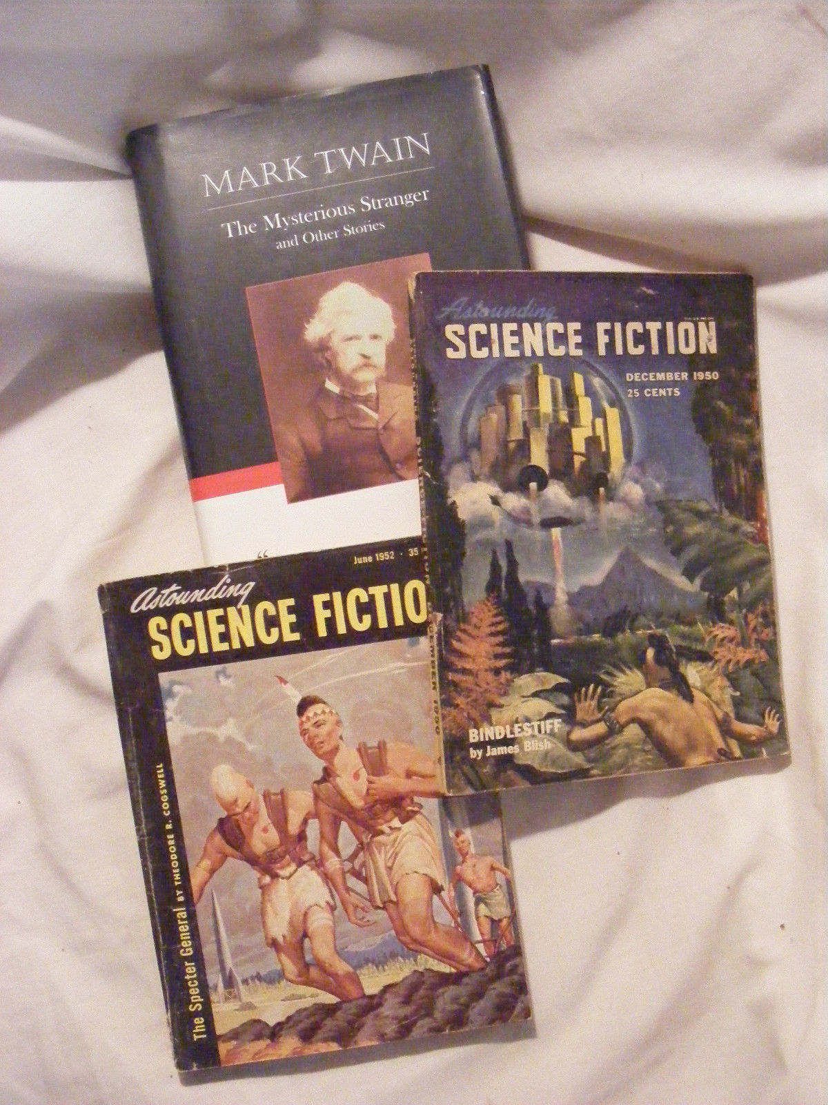 Title (ebay affiliate link): Mysterious Strangers: Mark Twain Stories & Astounding Science Fiction