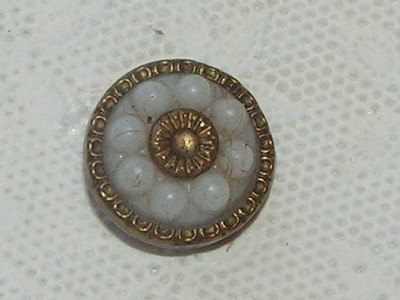 LOVELY ANTIQUE MILK GLASS & BRASS WAISTCOAT BUTTON