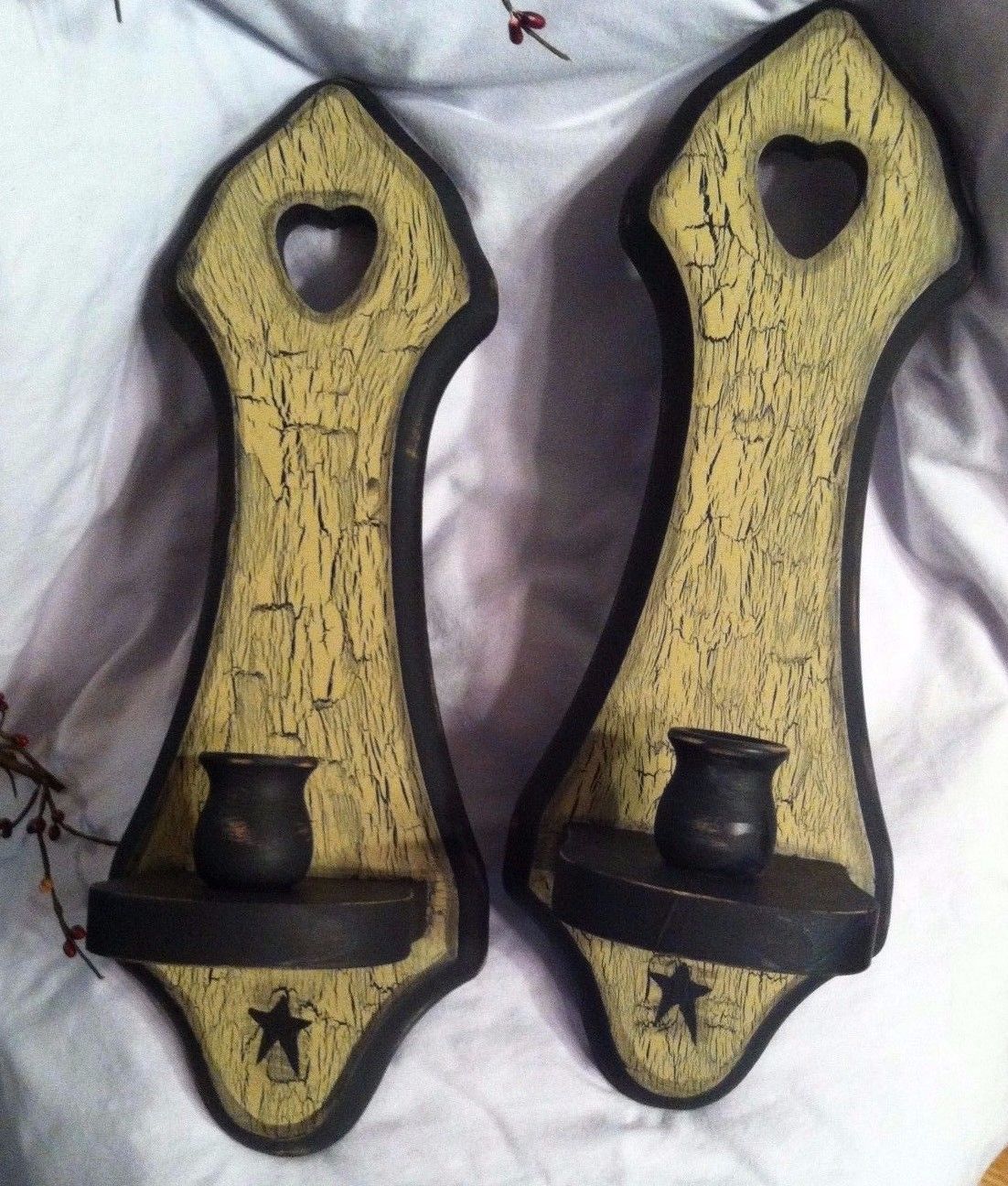 Title (ebay affiliate link): ~~Primitive Star Candle Sconces~~Black/Tan~~Wooden~~Crackled~~