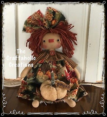 Title (ebay affiliate link): * Primitive RAGGEDY ANN doll ANNIE ~ Fall HARVEST autumn wagon PUMPKIN tag