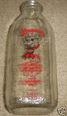 GLASS QUART MILK BOTTLE BROGUIERES DAIRY