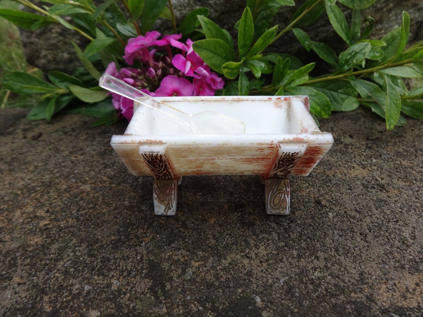 Milk Glass Trough/Manger Open Salt Dip, Cellar, Dish w/Spoon!