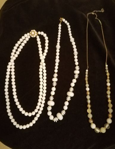 Title (ebay affiliate link): Vintage Estate Jewelry Lot 3 White Gold Milk Glass Lucite Beaded Necklaces