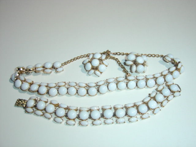 Title (ebay affiliate link): Vintage Milk Glass Alice Caviness Bracelet, Necklace Earring Set