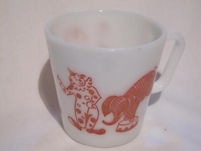 Vintage Pyrex Milk Glass Childs Mug D-Handle 1410 Circus Clown/Animal Theme FAB