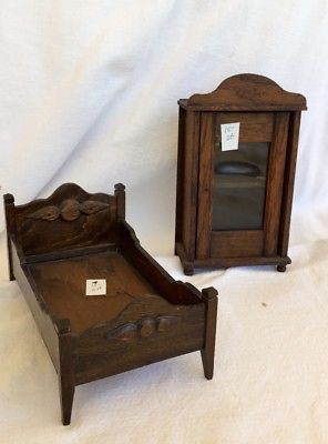 15-2: Antique Doll Furniture Bed and Glass Front Display China Cabinet Germany