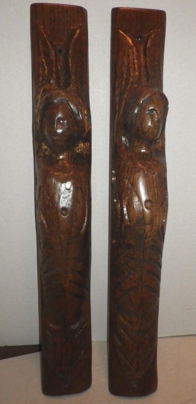Antique Vintage Wood Carving Lady Furniture Deocrative Ends Wall Art Plaques