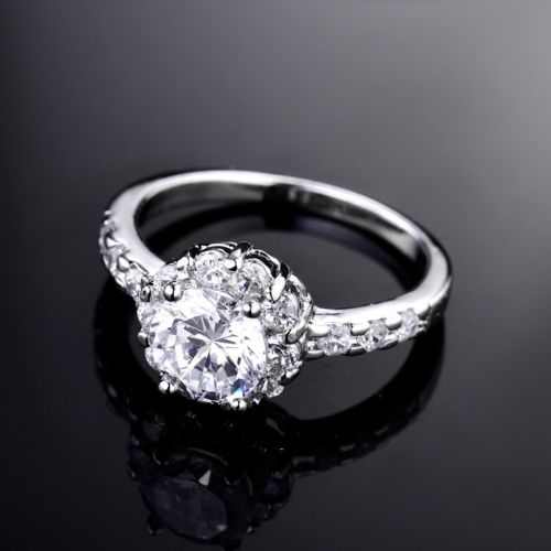 Vintage antique 18k gold plated white rhinestone diamonique rings Sz9/R