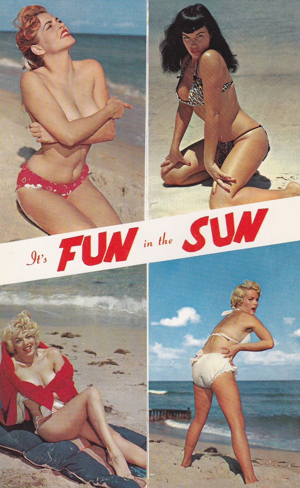 Title (ebay affiliate link): Large Pin-Up Postcard - Bettie Page and Maria Stinger - It''s Fun in the Sun