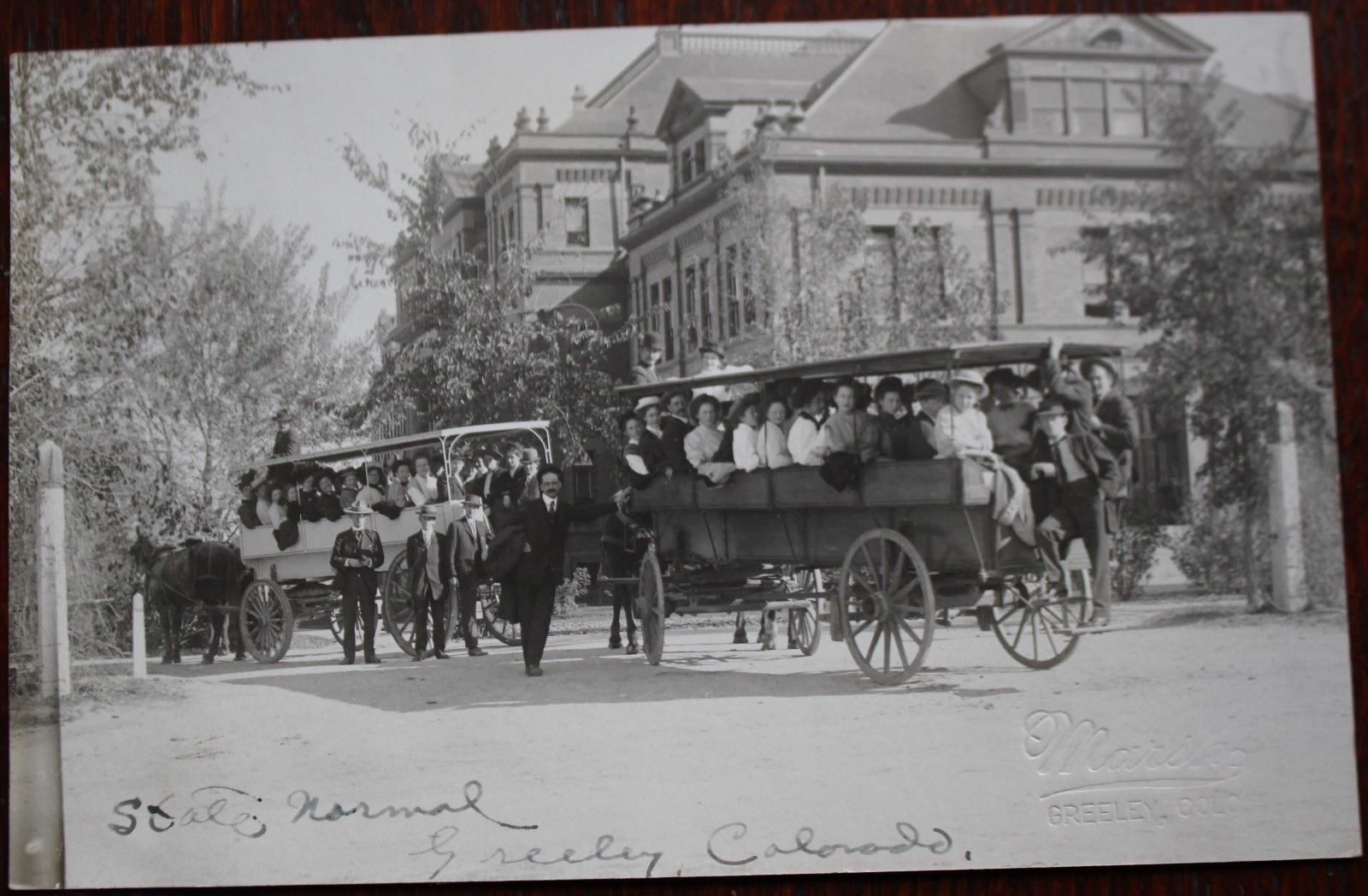 Title (ebay affiliate link): EARLY MARSH REAL PHOTO POSTCARD GREELEY, COLORADO STUDENTS CARRIAGE SCHOOL