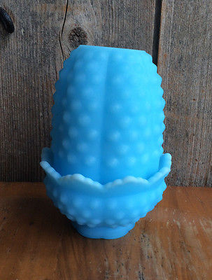 Title (ebay affiliate link): VTG FENTON ART GLASS LIGHT BLUE SATIN MILK GLASS FAIRY LAMP HOBNAIL