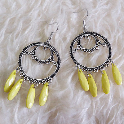 Title (ebay affiliate link): Vintage Womens Bohemian Antique-Charm Yellow Beads Dangle Drop Hook Earrings NEW