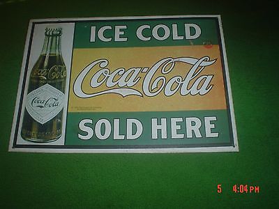Coc-Cota,Advertisement Sign,"Ice Cold Coca-Cota Sold Here",Collectible