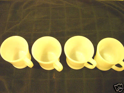 FIRE KING WHITE MILK GLASS D-HANDLE COFFEE MUGS SET 4