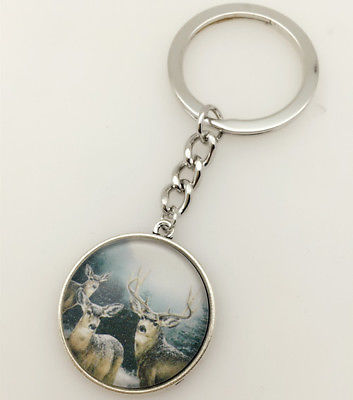 Vintage elk Cabochon Tibetan silver Glass Chain Pendant Metal Key Ring