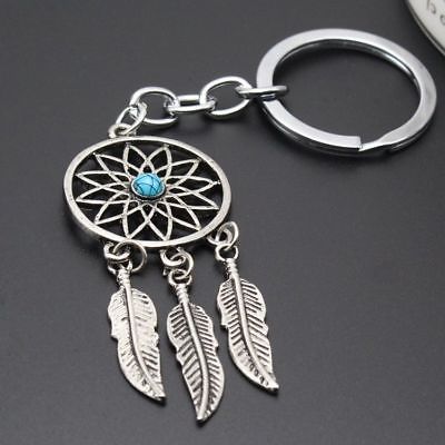 New Unisex Vintage Blue Beads Silver Dreamcatcher Key Chain Charm Keychain