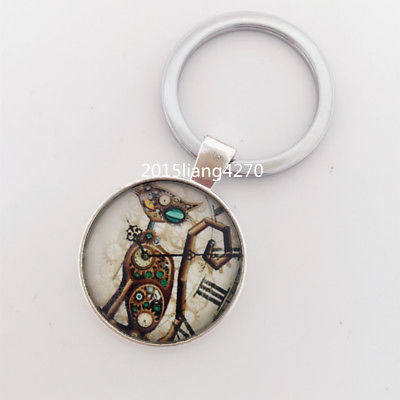 Vintage STEAMPUNK Cabochon Glass Tibet Silver Chain Pendant Metal Key Ring
