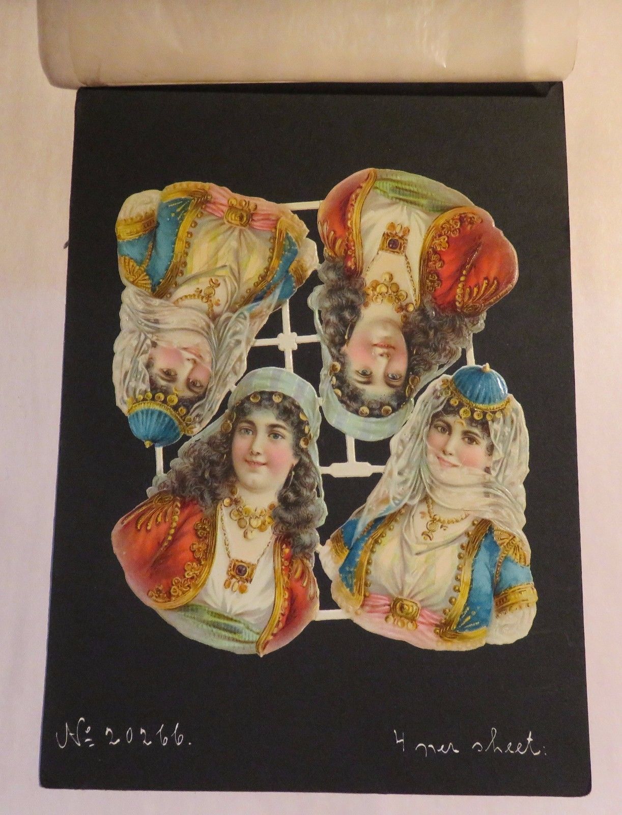 Title (ebay affiliate link): Vintage sheet Die Cut Scraps Arab Women w Jewels Scarves Salesman Samples