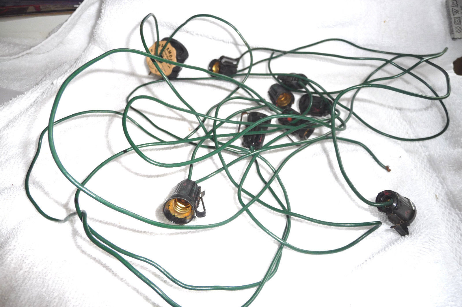 VINTAGE BUBBLE LIGHTS CORD NEEDS REPAIR 8 SOCKET PARAMOUNT WITH ORIG TAG & CLIPS