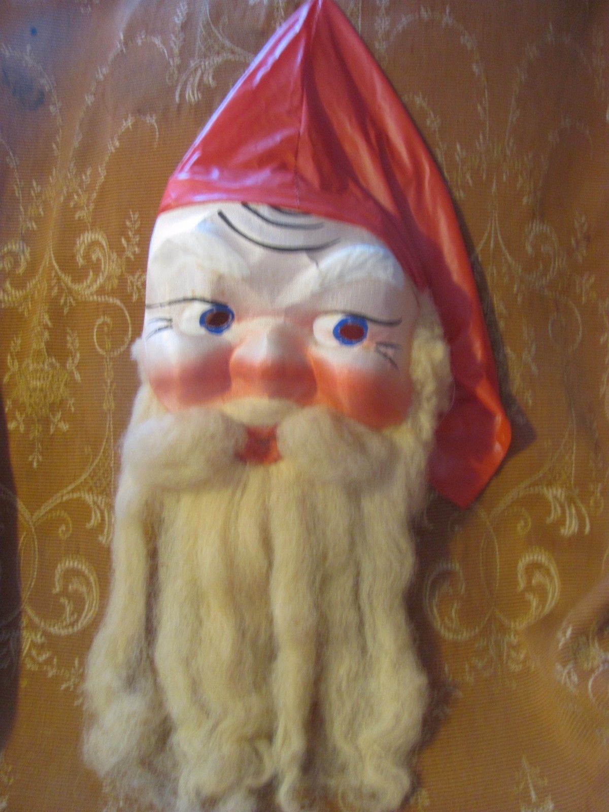 Title (ebay affiliate link): Vintage Antique~Santa Claus Mask~Cotton Beard~Red Vinyl Hat~Molded Fabric Face