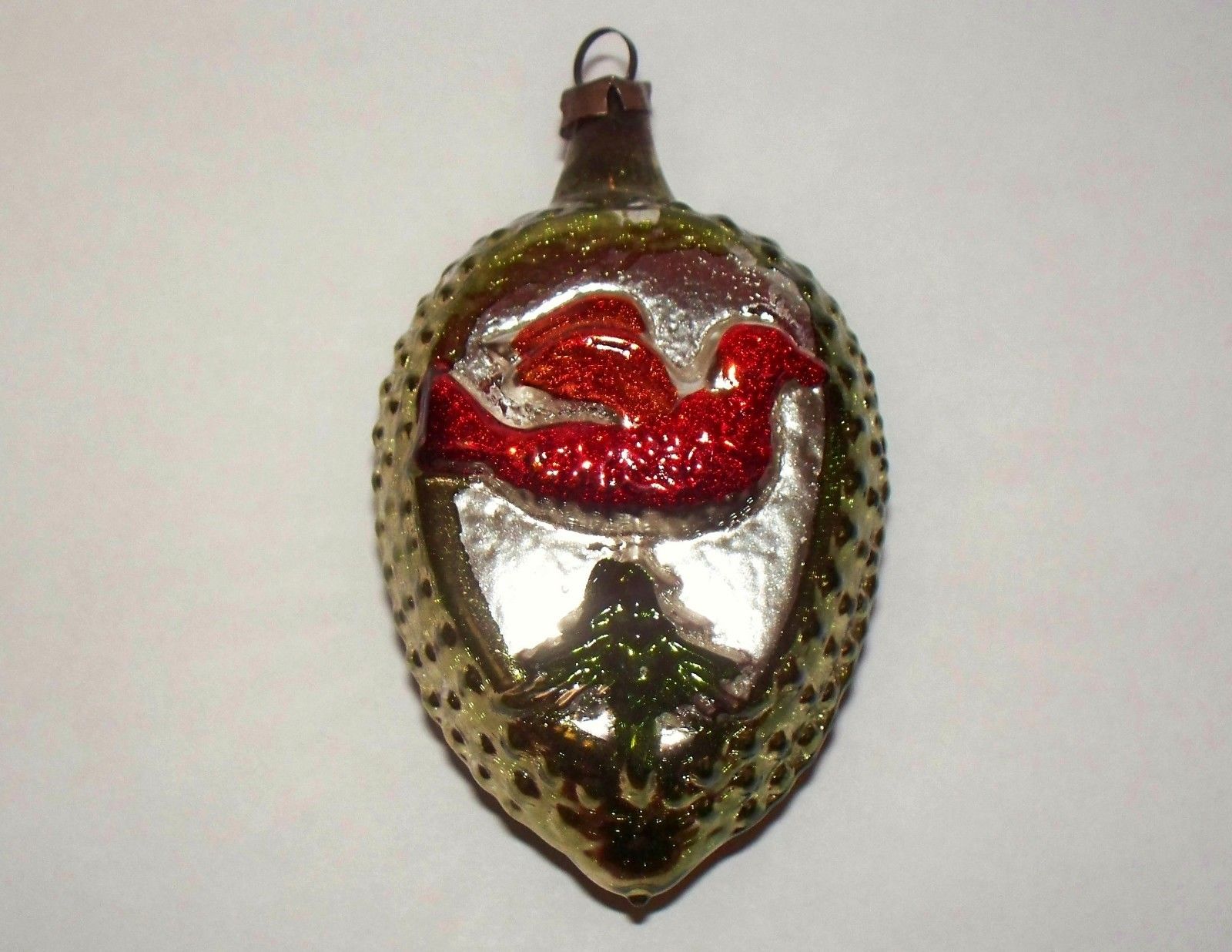 Title (ebay affiliate link): Antique Red Bird On Top Tree Mercury Glass Christmas Tree Ornament Green/Silver