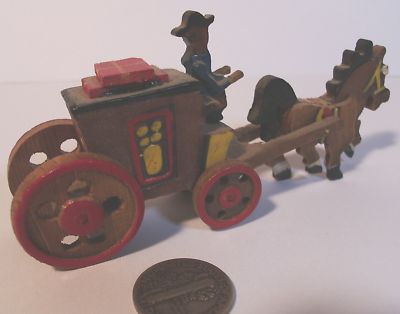 Vtg Tiny Carved Wood Stagecoach Horse Rider Japan