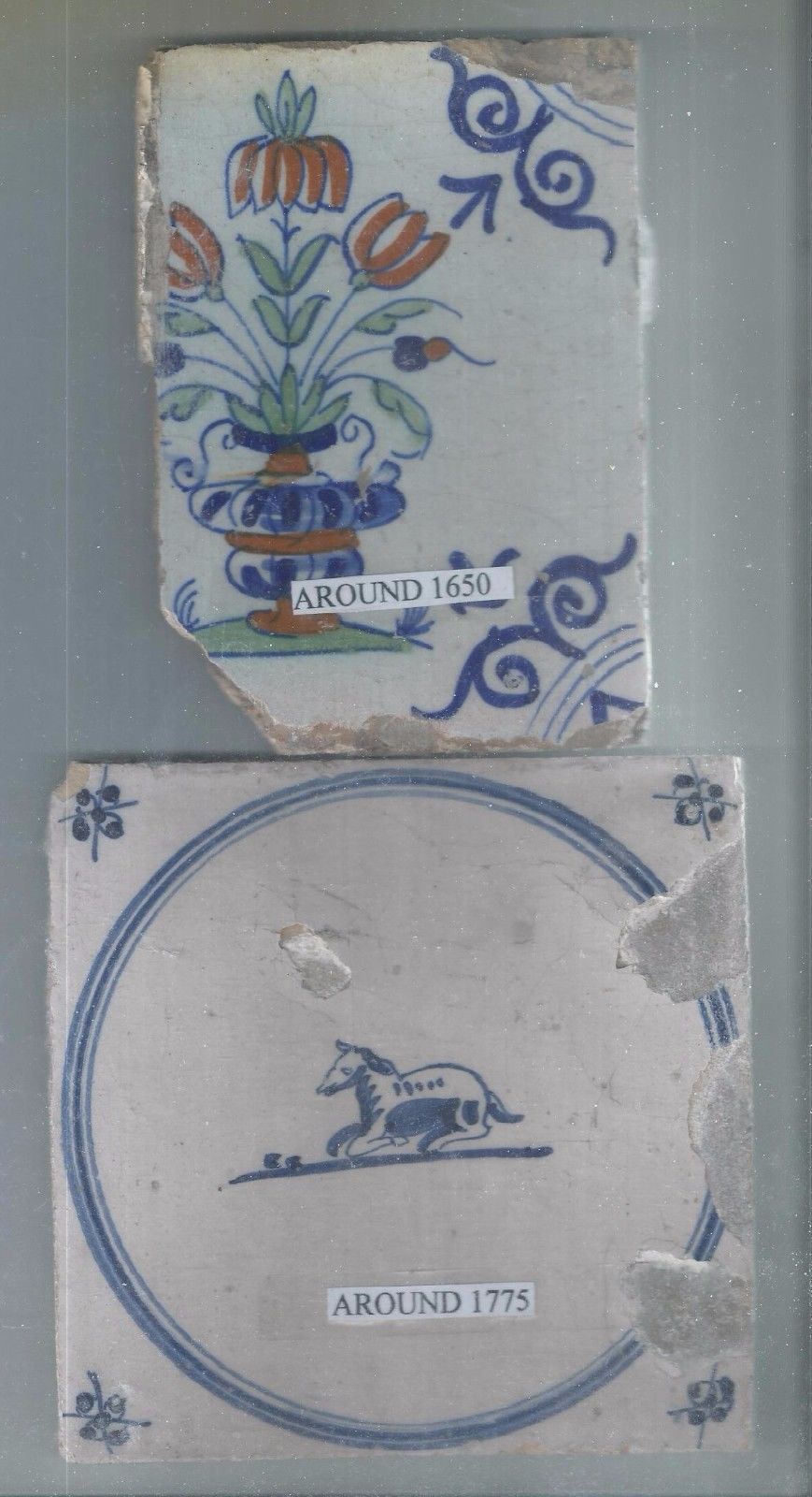 2 ANTIQUE DUTCH DELFT TILES AROUND 1650 + 1775