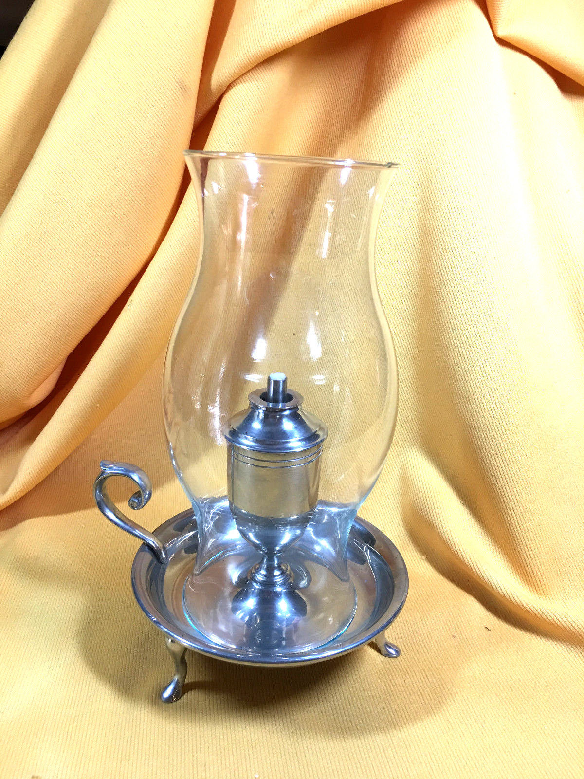 Title (ebay affiliate link): Pewter Handmade Whale Oil Lamp by SHIRLEY CO. Vintage MID-CENTURY Hurricane Lamp