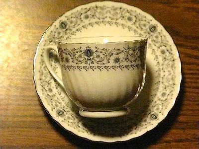 VINTAGE TEA CUP & SAUCER MADE IN CHINA SILVER PATTERN & TRIM ON WHITE PORCELAIN