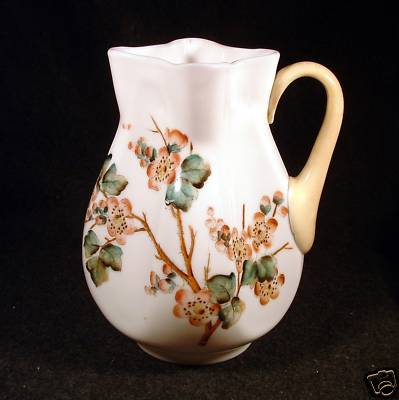 Vintage White Milk Glass Hd. Ptd. Hawthorn Pitcher