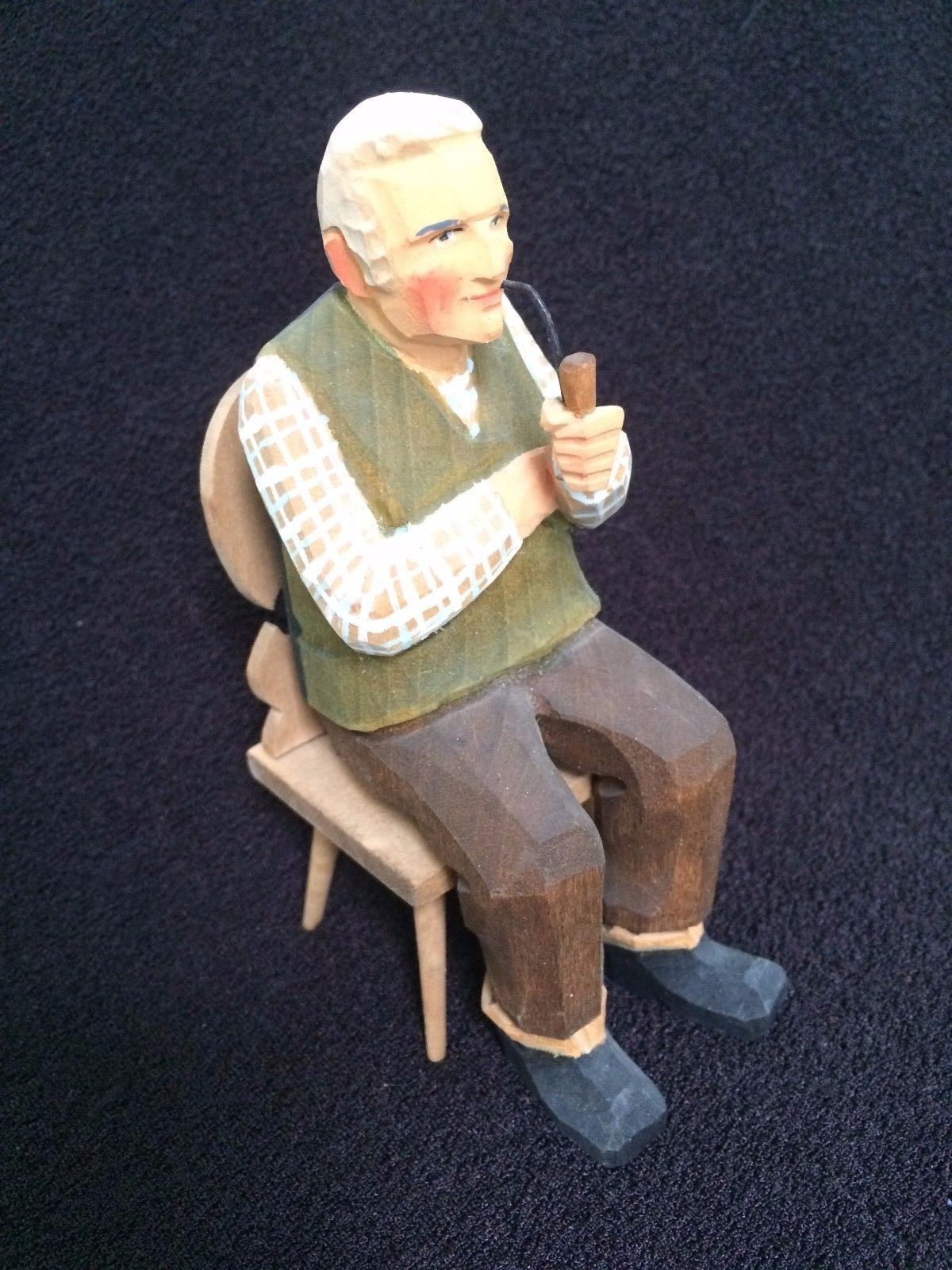 Title (ebay affiliate link): Swiss- Wooden Carved Painted Man Figure - Chair/Pipe/Smoking - DETAILED VTG ART